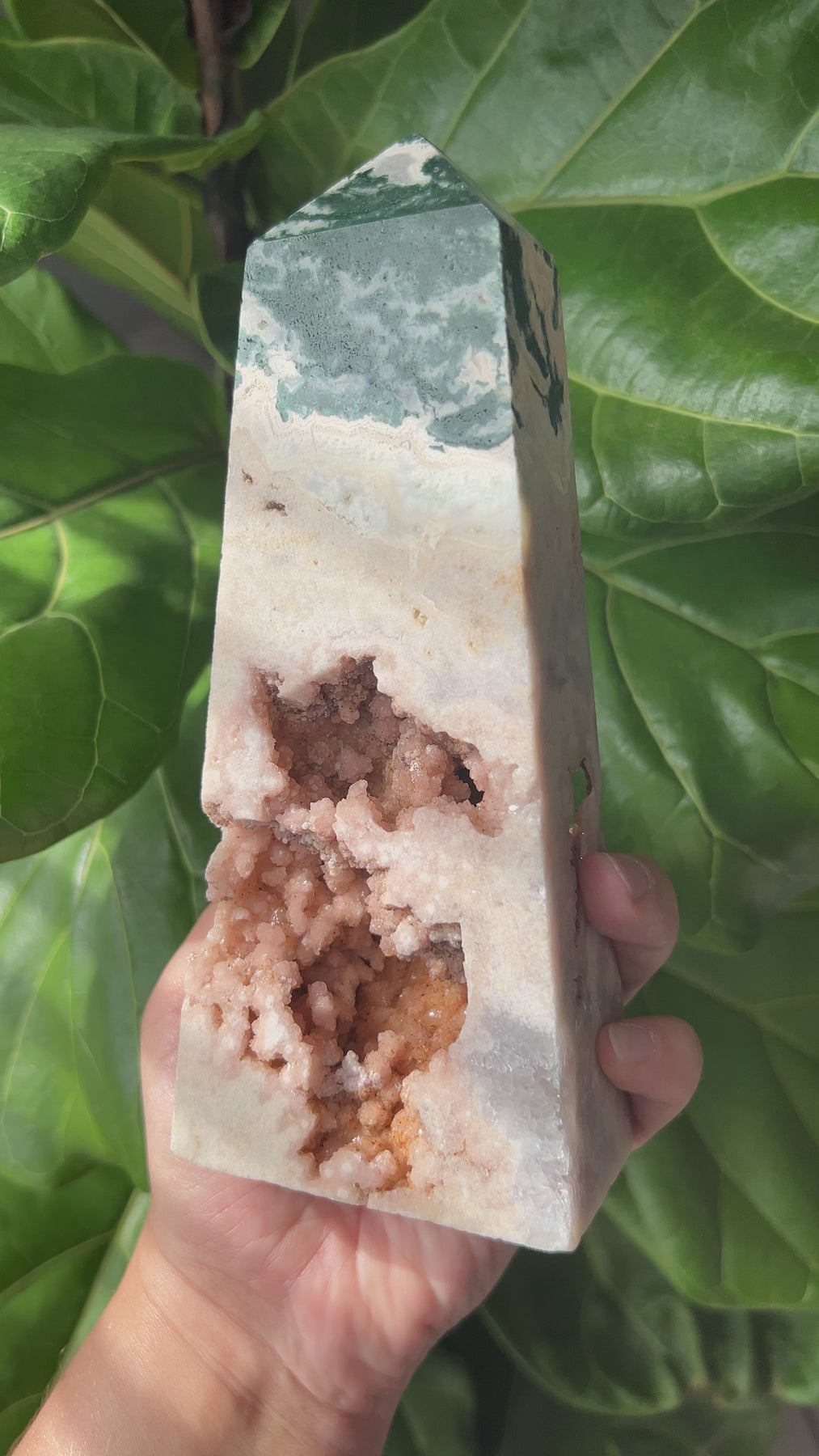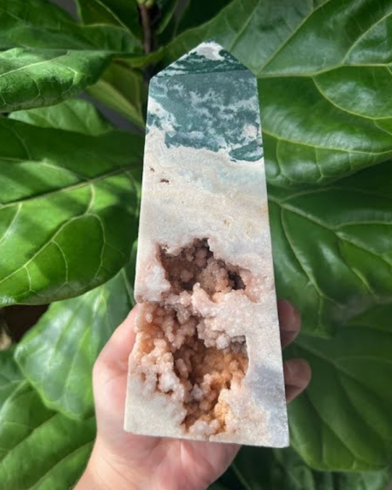 Pink Moss Agate Tower