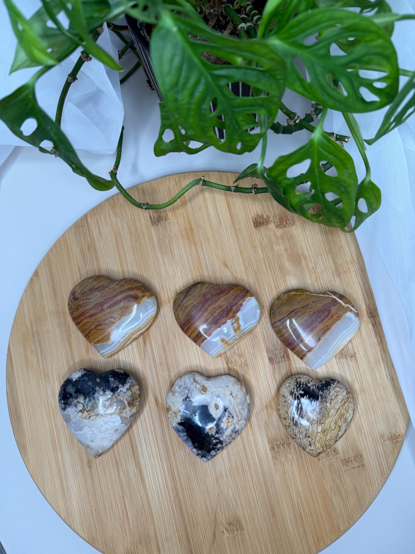 White Onyx and Fossilized Palm Root Hearts - Wholesale Lot